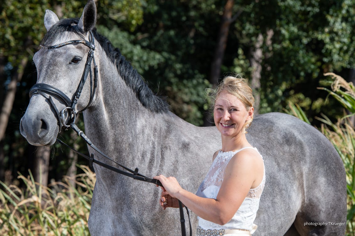 Cäthe ist 2021 als 3 jährige zu uns gekommen und Pia ist sehr glücklich darüber sie bei uns zu haben. Cäthe ist unser erstes Holsteiner Pferd und sie hat uns mit ihrer Ausstrahlung bereits voll uns ganz für sich vereinnahmt.