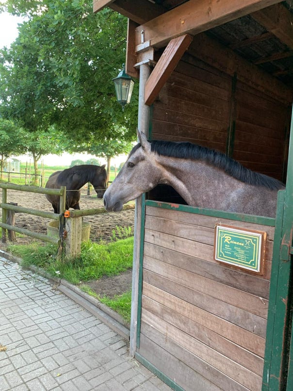 Cäthe ist 2021 als 3 jährige zu uns gekommen und Pia ist sehr glücklich darüber sie bei uns zu haben. Cäthe ist unser erstes Holsteiner Pferd und sie hat uns mit ihrer Ausstrahlung bereits voll uns ganz für sich vereinnahmt.
